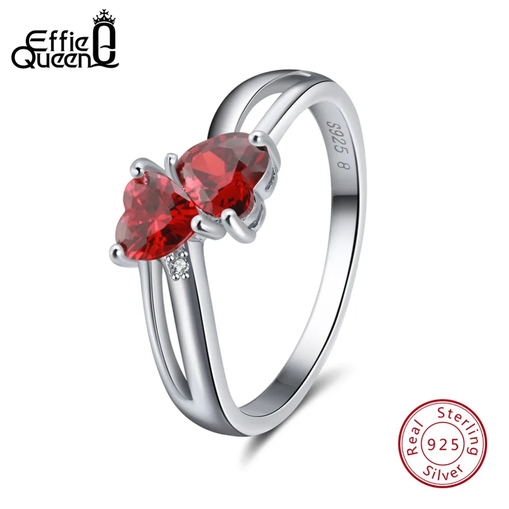 Эффи queen реального 925 пробы Серебряный двойной сердца Для женщин кольца с красный, белый фиолетовый кубический циркон предложить брак Кольц...