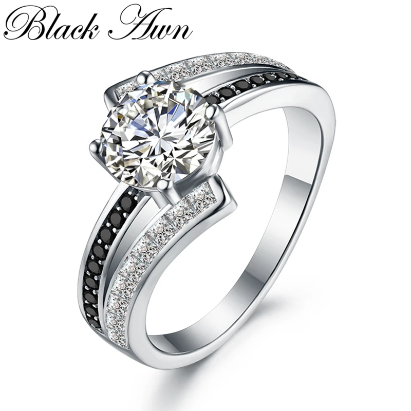 [Черный AWN] Настоящее 100% 925 пробы серебряные ювелирные изделия черная шпинель свадебные кольца для женщин женское кольцо Bague подарок C334