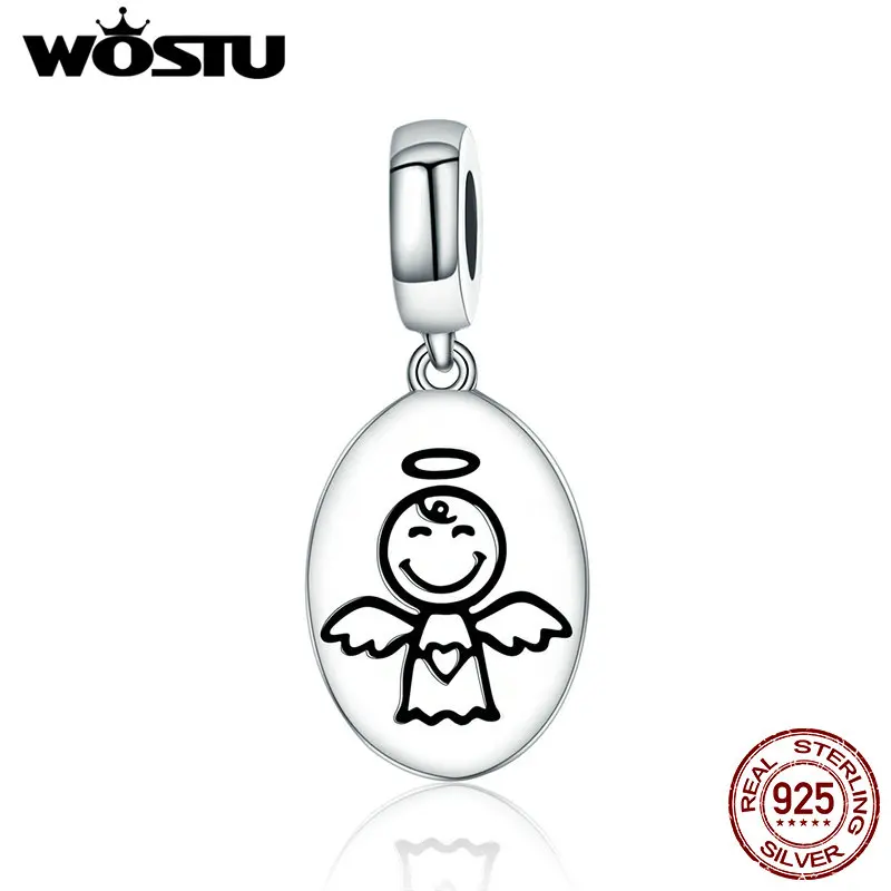 WOSTU, чистое серебро 925 пробы, ангел-хранитель, бусина-подвеска, подходит для оригинального очаровательного браслета WOSTU, ювелирное изделие для женщин и девушек, подарок BKC328