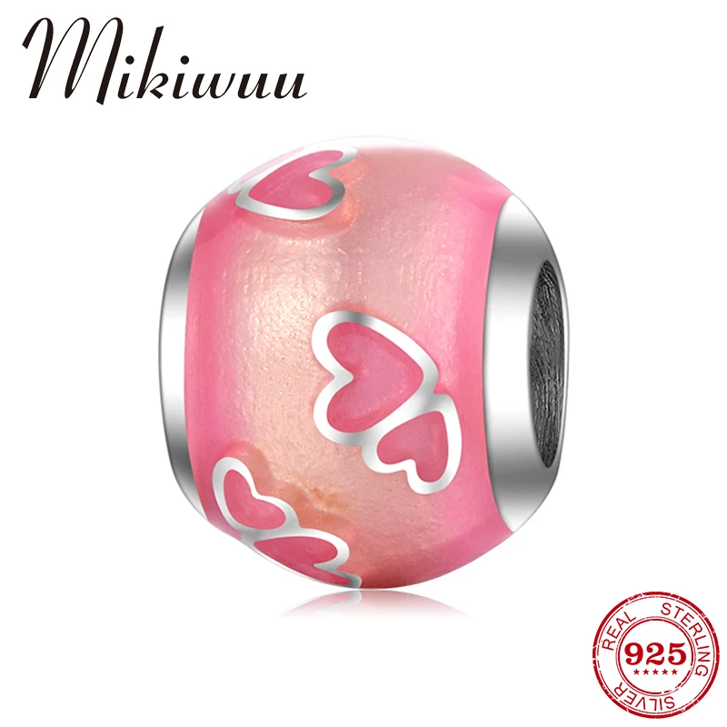 Подарки на день Святого Валентина, 925 пробы, серебряные, с сердечком, розовые, эмалированные, изящные бусины, очаровательные, подходят к ориг...