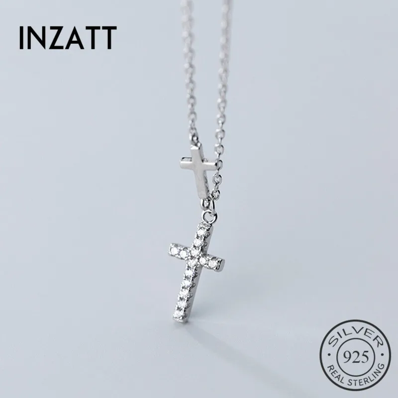 INZATT Настоящее серебро 925 проба Циркон геометрический кулон ожерелье для модных женщин ювелирные украшения милые аксессуары 2019 подарок