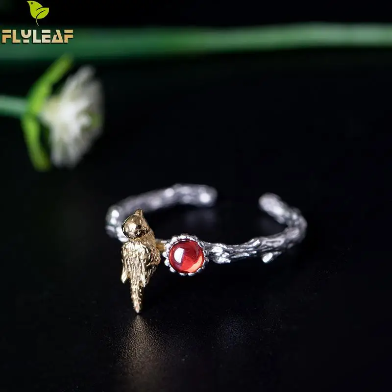 Flyleaf 100% Серебро 925 пробы гранат Ветка Птица натуральный гранат Открытые Кольца для женщин в китайском стиле дамские Винтажные Ювелирные Изделия