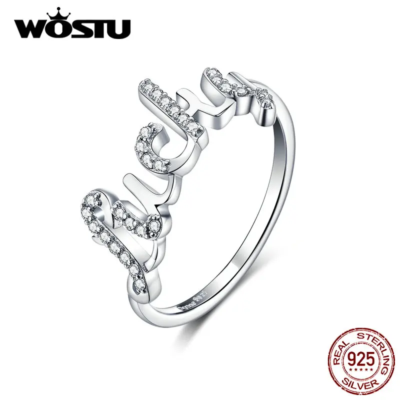 WOSTU горячая Распродажа 100% Настоящее 925 пробы Серебряное кольцо для женщин новый дизайн 2019 CZ счастливые кольца с декоративной надписью модно...