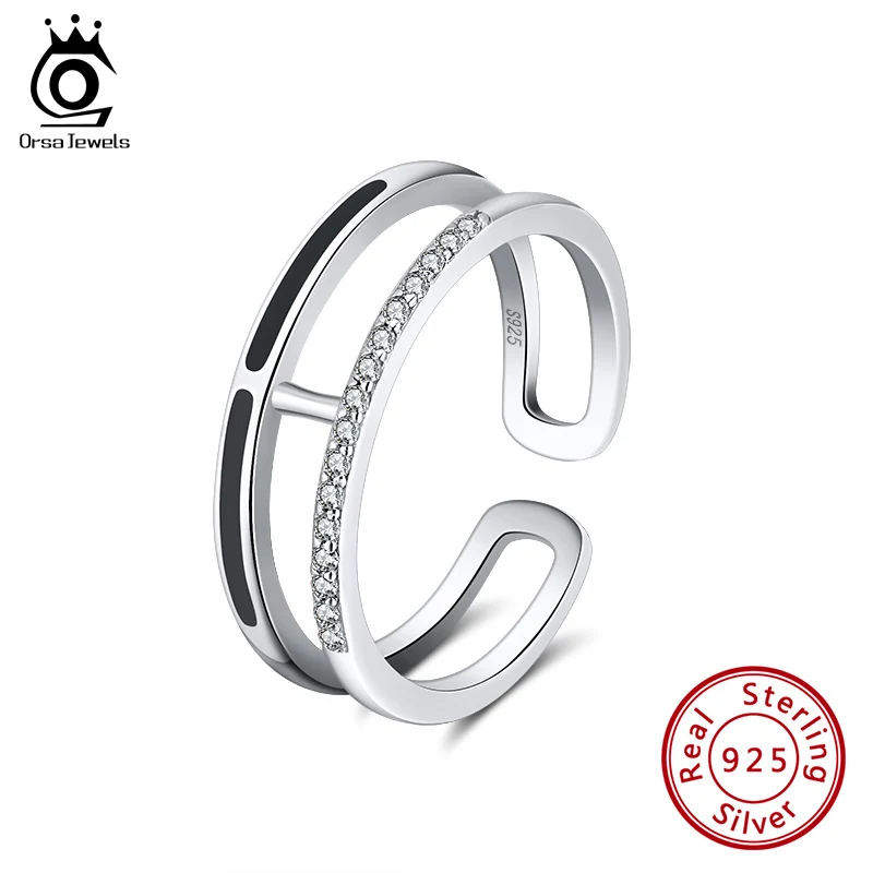 ORSA JEWELS Аутентичные 925 кольца с эмалью для женщин, AAAA, циркон, серебро, юбилей, вечерние, штабелируемые кольца, хорошее ювелирное изделие SR158
