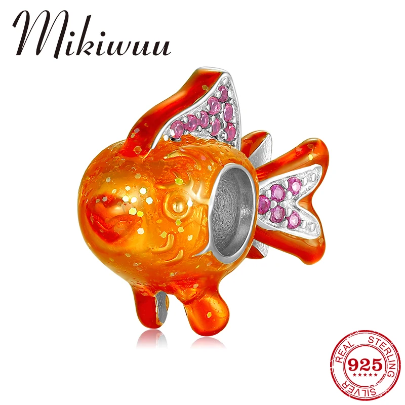 Подлинный 925 пробы, серебряная эмаль, милая Золотая рыбка, очаровательный бисер, подходит для оригинала Pandora, очаровательные браслеты, хорош...