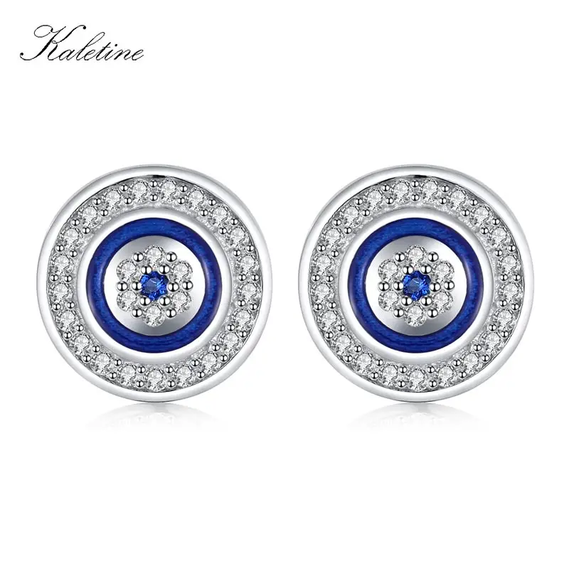Женские сережки-гвоздики Kaletine, сережки из стерлингового серебра 925 пробы с голубым цирконием, турецкие серьги Fatima Lucky, модные ювелирные изделия
