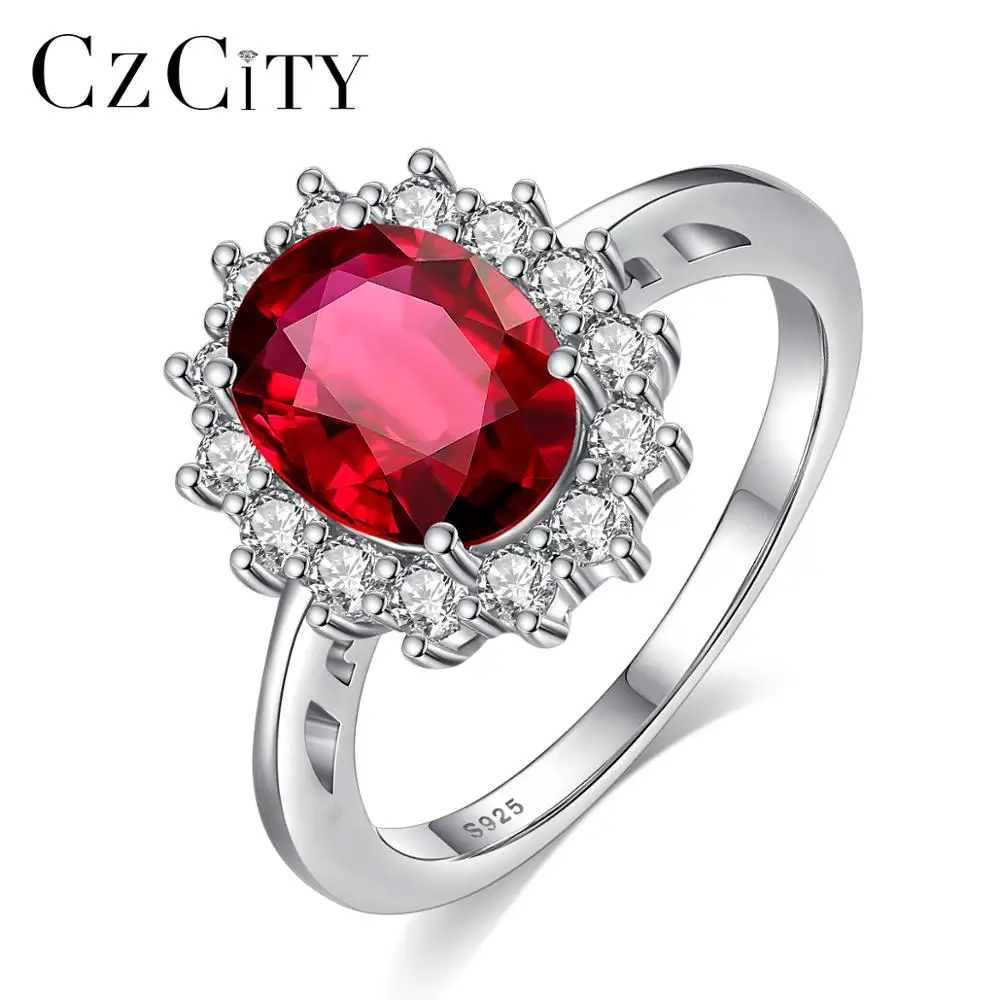 CZCITY Принцесса Диана Вильям Кейт рубиновый Изумрудный сапфир обручальные кольца для женщин 925 пробы серебряные ювелирные изделия