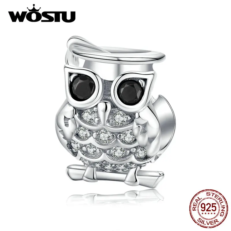 WOSTU 100% 925 пробы серебряные милые бусины в виде совы из чистого циркона подходят к оригинальному браслету Подвески модные ювелирные изделия CTC124