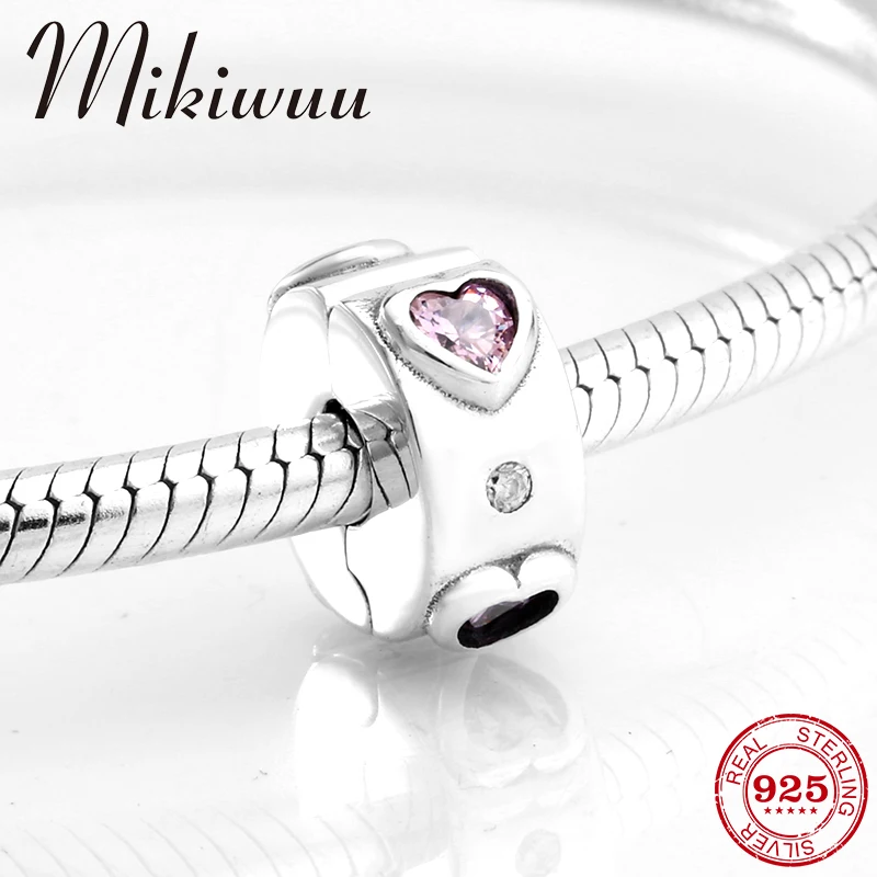 Круглый 925 пробы серебро розовое сердце Клипсы из циркония Замок бусины для изготовления ювелирных изделий подходят оригинальный браслет п...