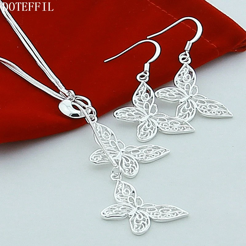 Серебряное ожерелье с двойной бабочкой, женские серьги из стерлингового серебра 925 пробы, модное Очаровательное ожерелье, серьги, качественные ювелирные изделия