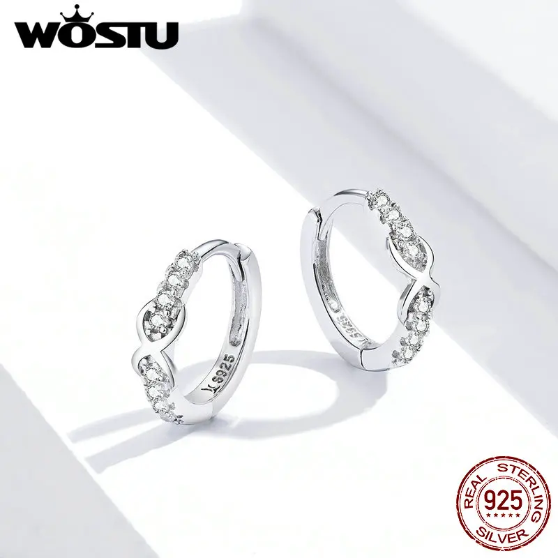 Женские серьги-кольца WOSTU Infinity Love, Круглый фианит из настоящего серебра 925 пробы, ювелирные изделия для свадебной вечеринки, FIE872