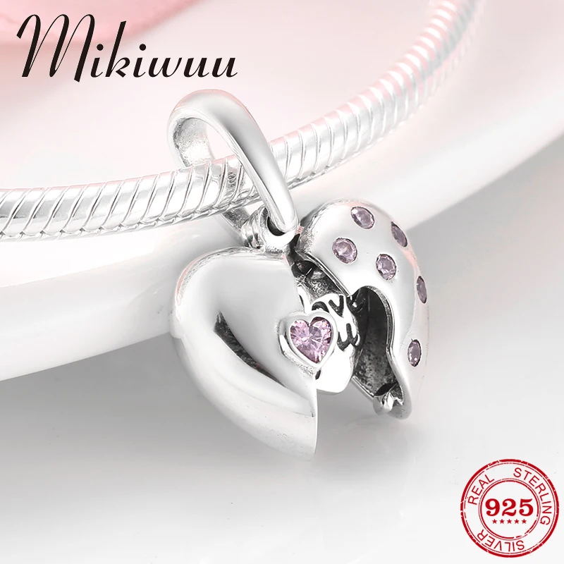 Женский подарок из стерлингового серебра 925 пробы, креативный кулон в виде сердца Love you, подходит к оригиналу Pandora Амулеты Браслет с подвеска...