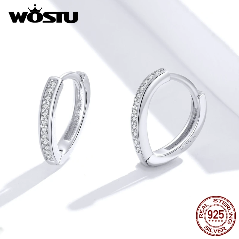WOSTU геометрические серьги-кольца из настоящего серебра 925 пробы, ослепительный циркон, простые серьги для женщин, классические ювелирные изделия, подарок CQE868