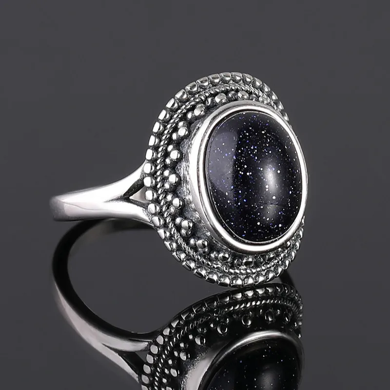 Кольца из стерлингового серебра 925 пробы с голубым песком и драгоценными камнями, кольца для женщин, обручальные кольца, Подарок на годовщину, ювелирные украшения
