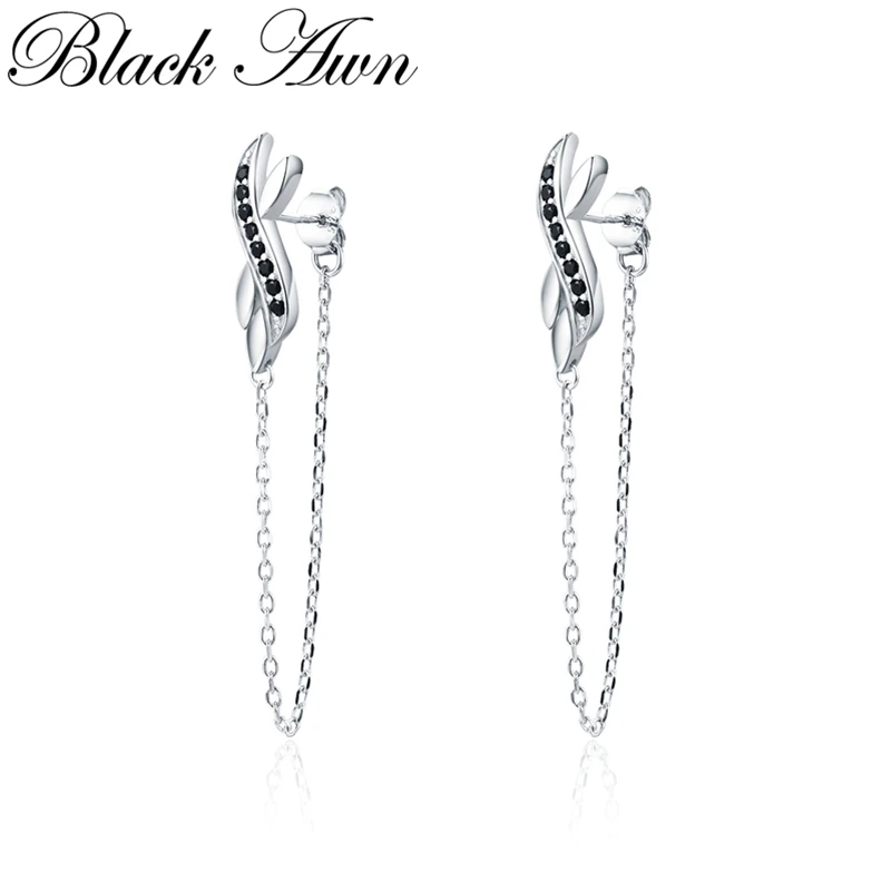 [Черный AWN] Панк 925 пробы серебряные серьги с цепочкой черная шпинель обручение серьги-гвоздики для женщин серебро 925 ювелирные изделия I041