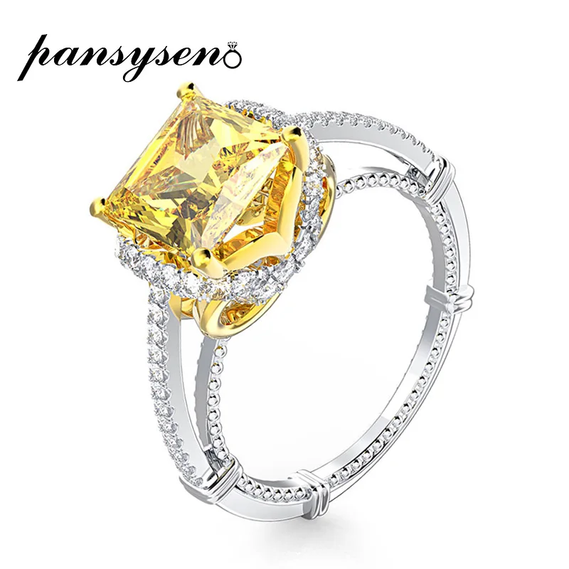 PANSYSEN светло-желтый цитрин драгоценные камни кольца для женщин Твердые стерлингового серебра 925 пробы модное свадебное Ювелирное кольцо кам...
