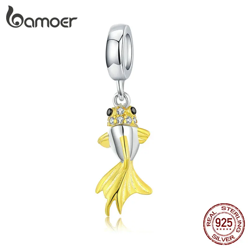 Bamoer, 925 пробы, серебро, золото, цвет, подвеска рыбий хвост, Шарм для оригинала, серебряный браслет и ожерелье, для женщин, сделай сам, ювелирное изделие, BSC127
