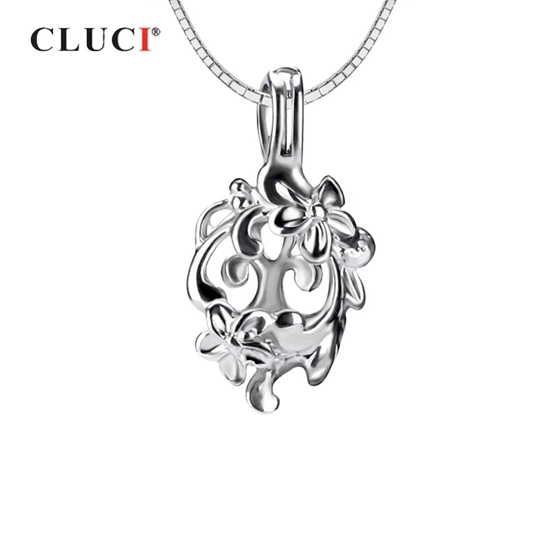 CLUCI реального 925 пробы серебро клетка кулон Fine Jewelry Плюмерия красная цветок в форме Для женщин серебро 925 клетка кулон