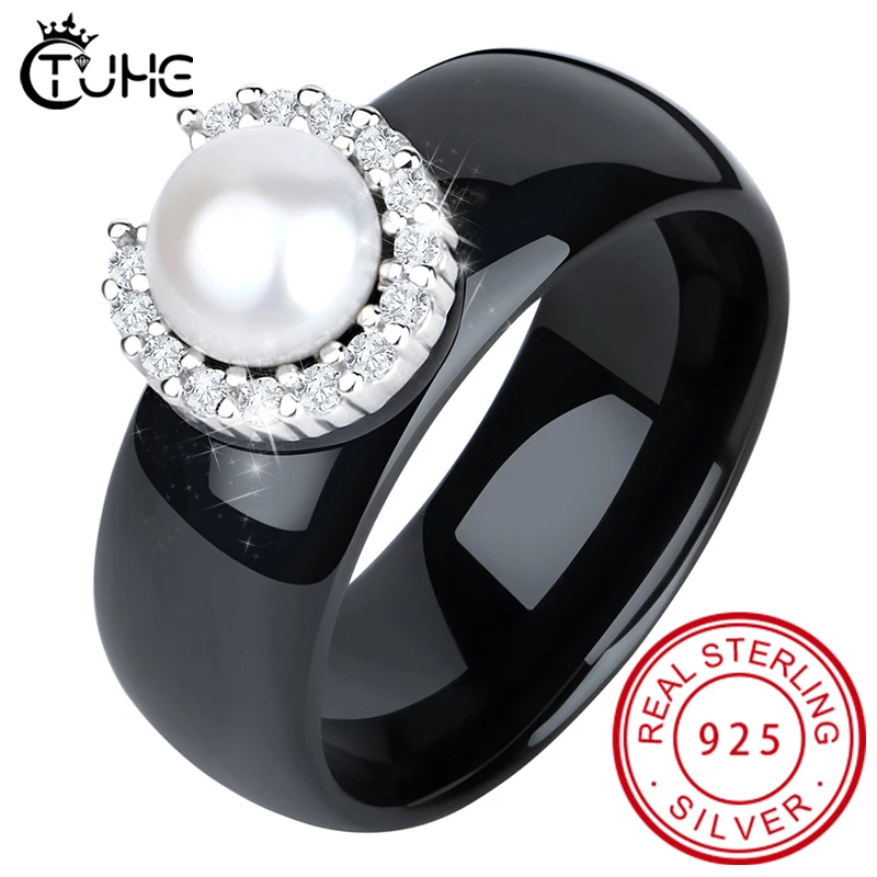S925 стерлингового серебра кольца для женщин Настоящее Жемчужное кольцо с драгоценным камнем керамика романтический подарок обручальные юв...