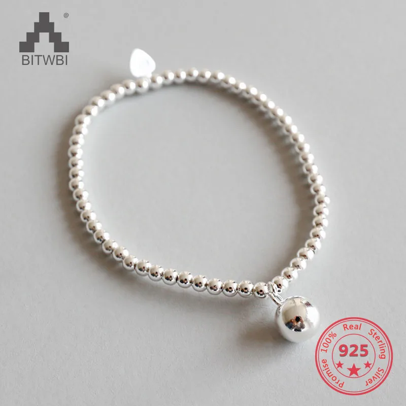 Простой Круглый браслет из бисера для дам Настоящее 925 пробы серебряный браслет Для женщин Fine Jewelry оптовая продажа