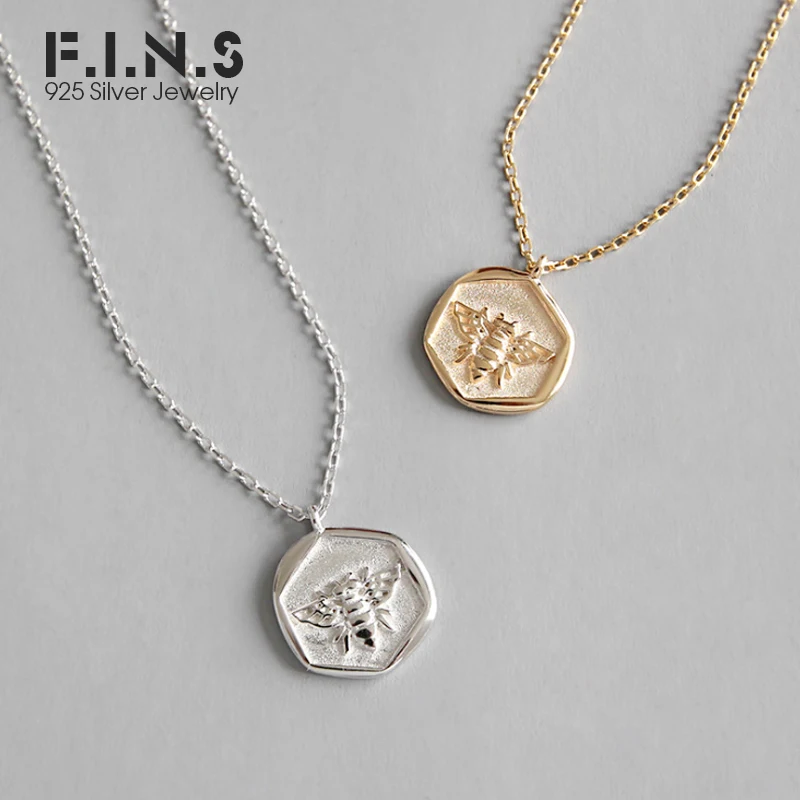 F.I.N.S S925 Стерлинговое серебро розовый Золотой шестигранник резное маленькое ожерелье пчелки подвески для женщин серебро 925 пробы ювелирные украшения