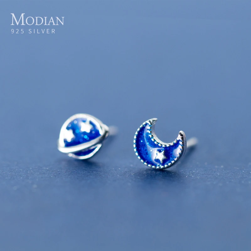 Modian звезда и Луна эмаль синяя галактика, планета Серебро Серьги Подвески милые 925 стерлингового серебра Вечерние ювелирные изделия для женщ...