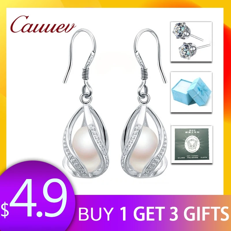 Натуральный пресноводный жемчуг Висячие серьги для женщин Элегантный 925 пробы серебро против аллергии серьги сделай сам, клетка Jewelry 2019 caueev