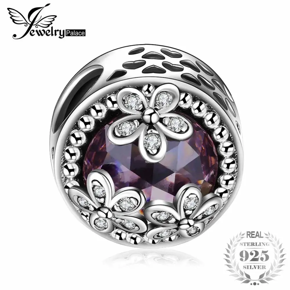JewelryPalace 925 пробы серебряные бусины сверкающими ромашки кубического циркония Шарм Браслет Fit Браслеты Цветок Серебряные ювелирные изделия