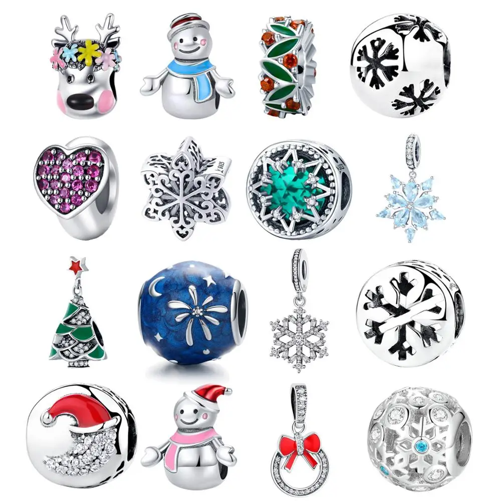 Бисаер, 925 пробы, серебро, рождественские амулеты, снежинки, снеговик, Рождественская елка, бусины, подходят для изготовления ювелирных изделий из серебра 925 пробы