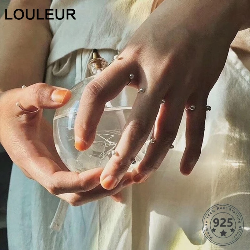 LouLeur Настоящее серебро 925 пробы кольцо неправильной формы минималистичные персональные широкие кольца для пар для свадьбы Модные женские ювелирные изделия подарки