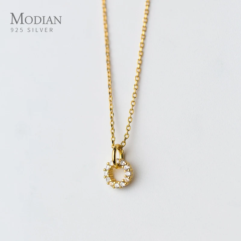 Modian, двойной круглый, прозрачный CZ ожерелье для женщин, подлинное серебро 925 пробы, золотой цвет, цепочка, ожерелья для женщин, ювелирные украшения