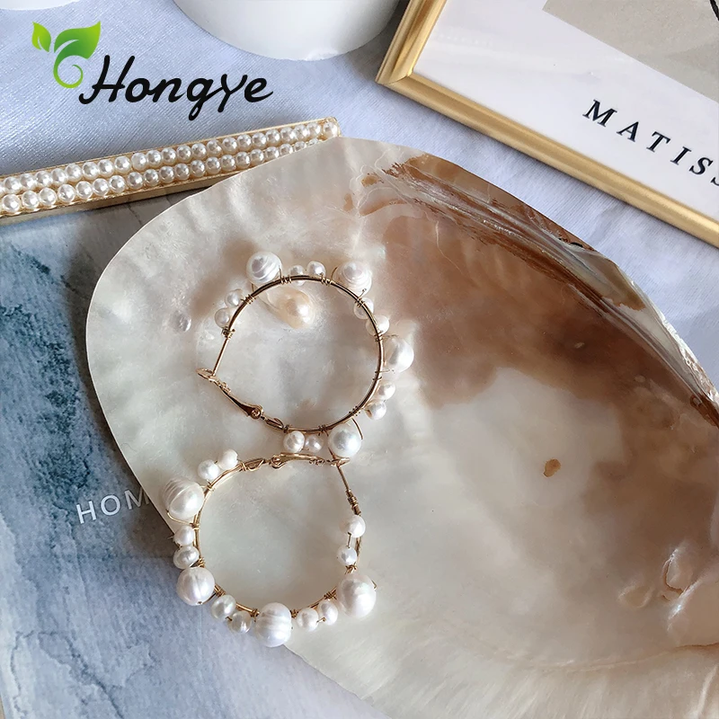 Hongye очень большие серьги с барочным жемчугом, круглые висячие серьги, персонализированные висячие серьги в стиле барокко