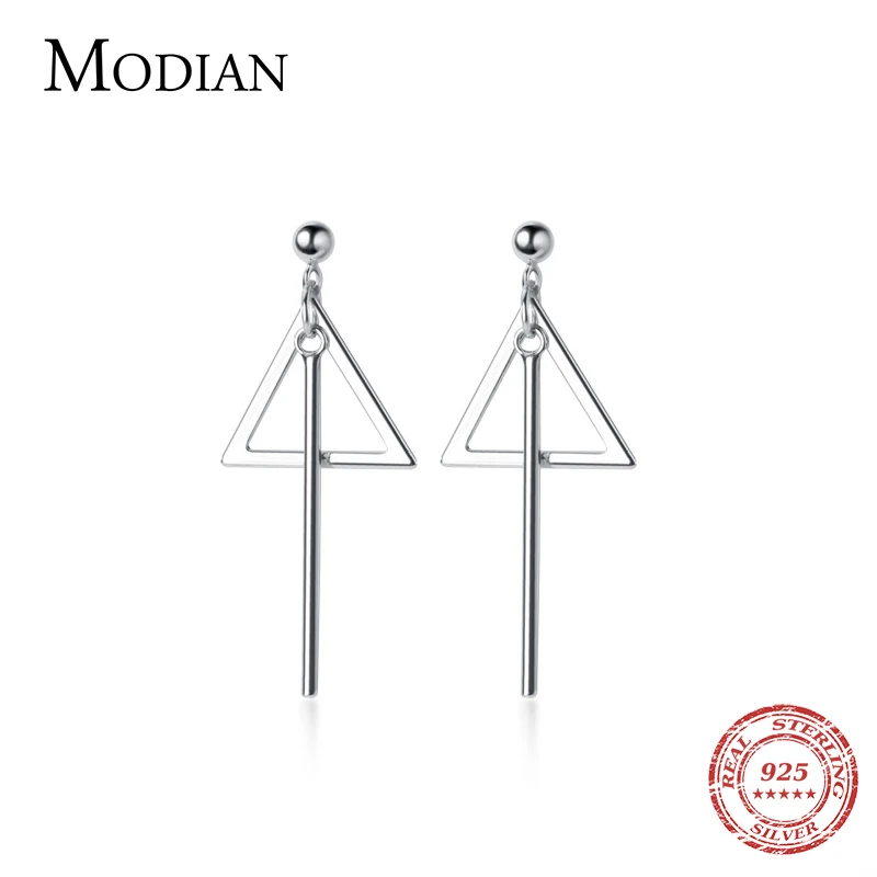 Женские Геометрические серьги-гвоздики с треугольной линией MODIAN, Настоящее серебро 925 пробы, модные простые серьги черного цвета, ювелирные украшения