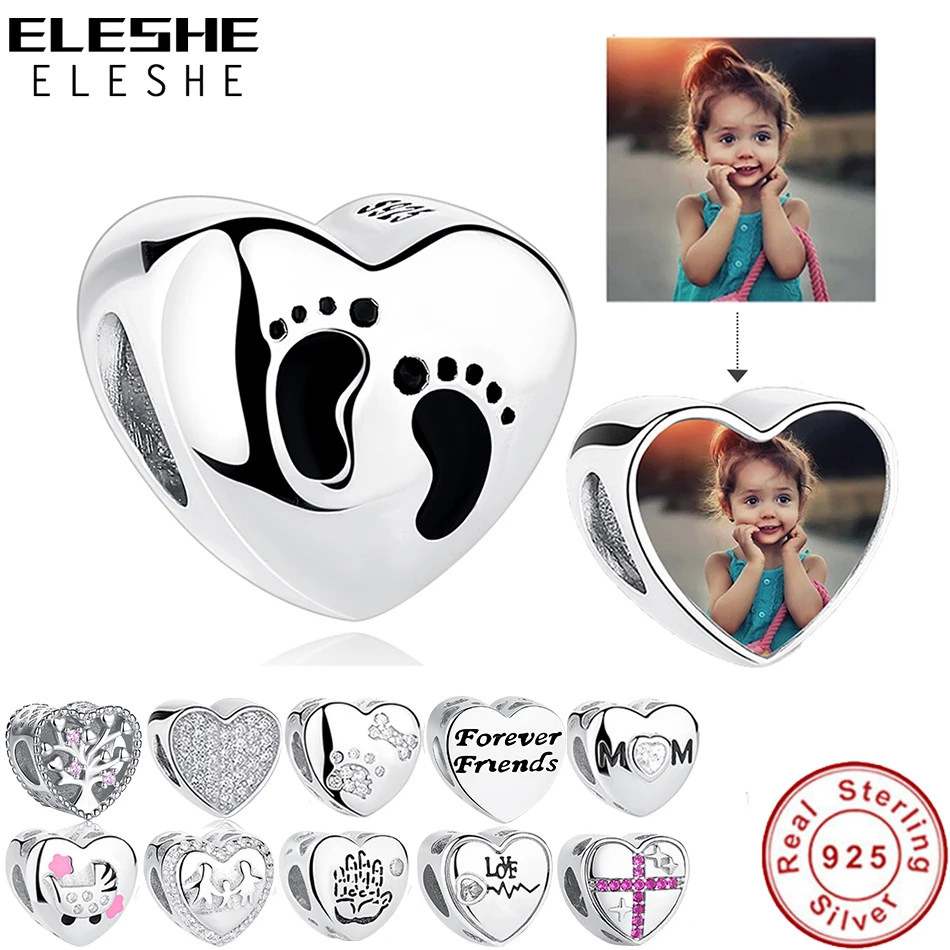ELESHE Бесплатная гравировка имя и бесплатные индивидуальные фото Шарм бусины 925 пробы серебро Шарм DIY персонализированные ювелирные изделия