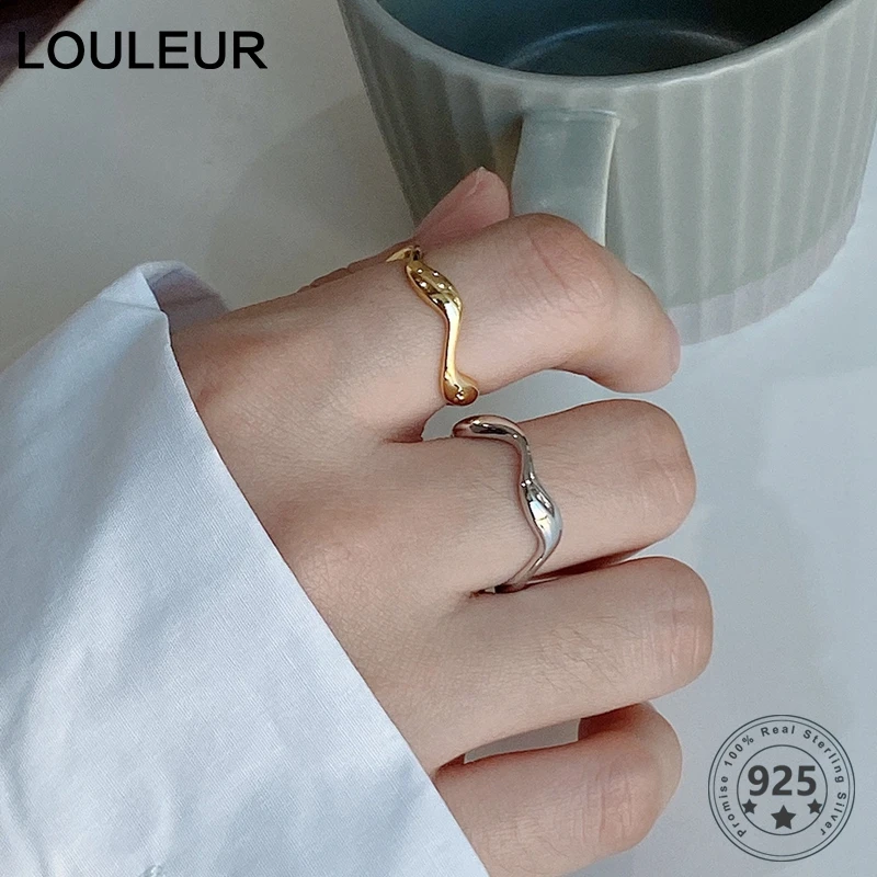 LouLeur, настоящее 925 пробы, серебряное, кривое кольцо, минималистичное, женское, неправильное, Золотое кольцо для женщин, модное, роскошное ювелирное изделие, подарки