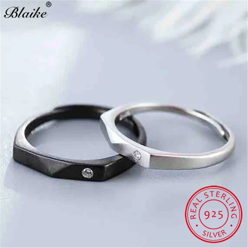 Blaike минималистичное свадебное кольцо для влюбленных, тонкое кольцо для женщин и мужчин из стерлингового серебра 925 пробы, Открытое кольцо с камнем цирконием, кольцо для мужчин