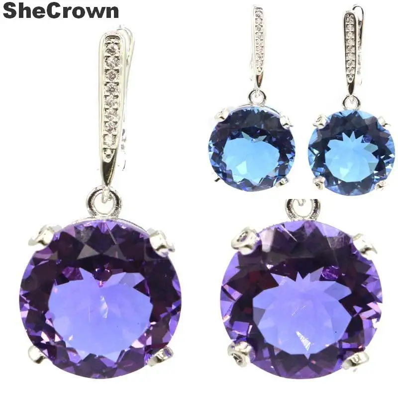 SheCrown длинные круглой формы новый камень иолит Белый CZ подарок для дам серебряные серьги 63x8 мм