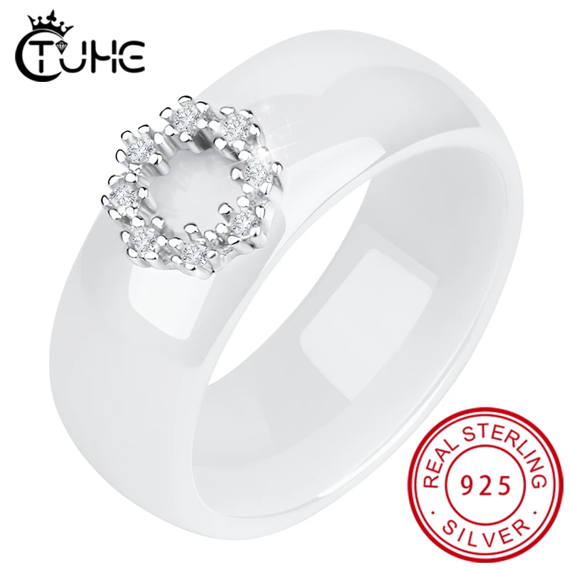 Кольца с кристаллами из серебра 8 мм с D 925 пробы, изготовленные из здорового керамического материала, кольца для помолвки и свадьбы для женщин в подарок