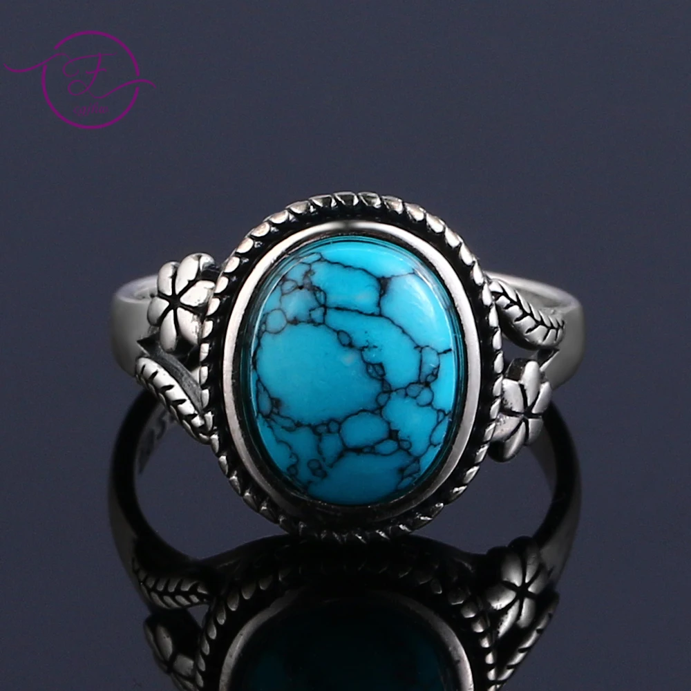 S925 Серебряное модное ювелирное изделие для женщин из натуральной бирюзы, персонализированные кольца для женщин, обручальные ювелирные изд...
