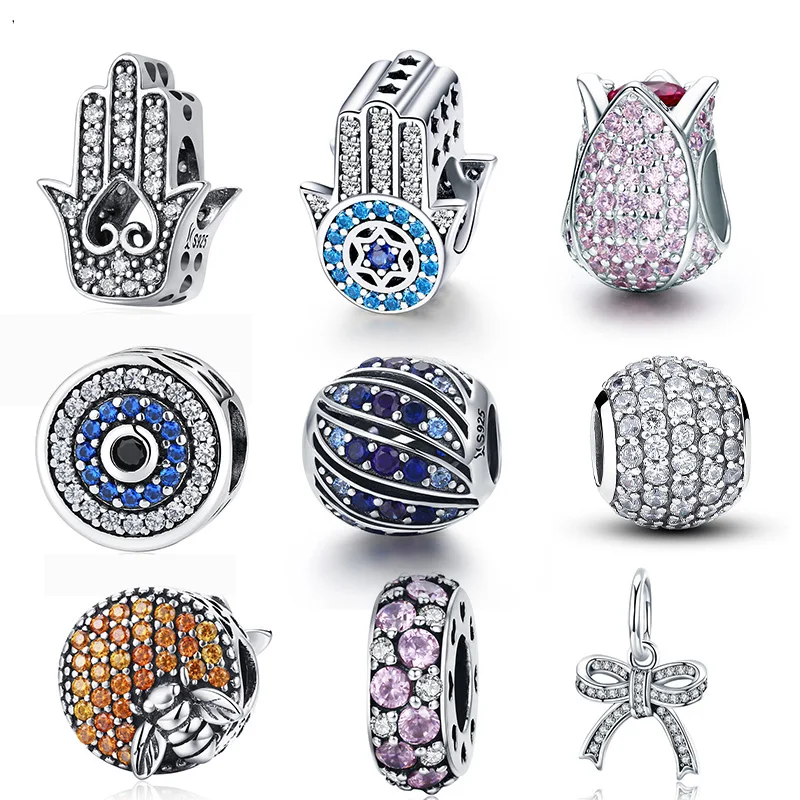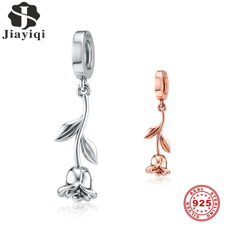 Jiayiqi серебряные и золотые розовые цветочные подвески серебряные бусины 925 пробы подходят Pandora оригинальные браслеты и ожерелья DIY ювелирные изделия подарок