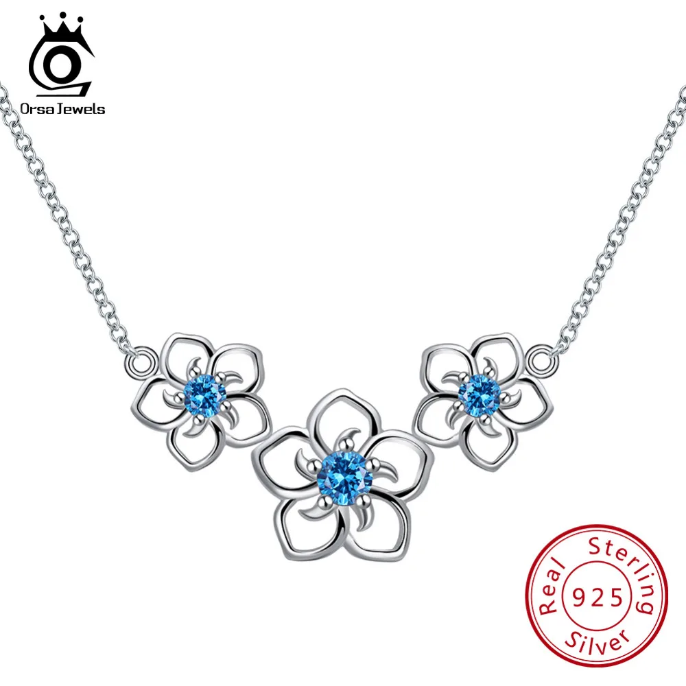 ORSA JEWELS 100% Настоящее серебро 925 пробы ожерелья для женщин 3 шт. выдолбленные цветы с высшего класса кубический циркон женские украшения SN96