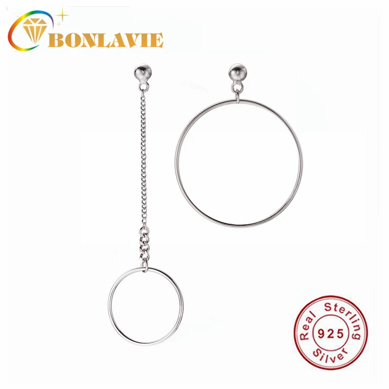 BONLAVIE 925 пробы серебряные Асимметричные круглые серьги персонализированные модные геометрические серьги висячие серьги ювелирные изделия