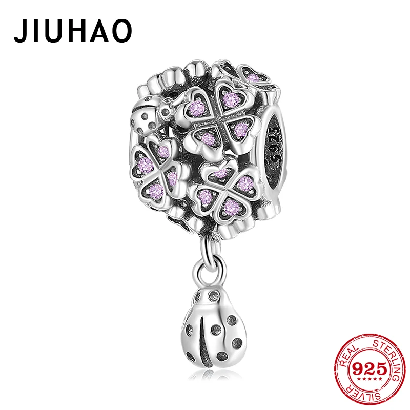 Подлинный 925 пробы Серебряный счастливый клевер с подвеской Божья коровка CZ шарик подходит оригинальный Pandora талисманы браслет для женщин Изготовление ювелирных изделий