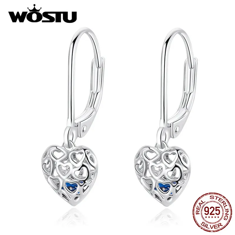 WOSTU 2019 Новое поступление 925 пробы серебряные ажурные серьги в форме сердца для женщин Свадебные Роскошные серьги ювелирные изделия подарки CQE746