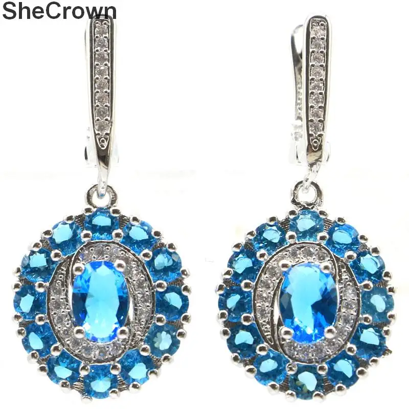 32x16 мм 2020 Новое поступление создан Париж, голубой топаз Белый CZ подарок для дам Свадебные серебряные серьги