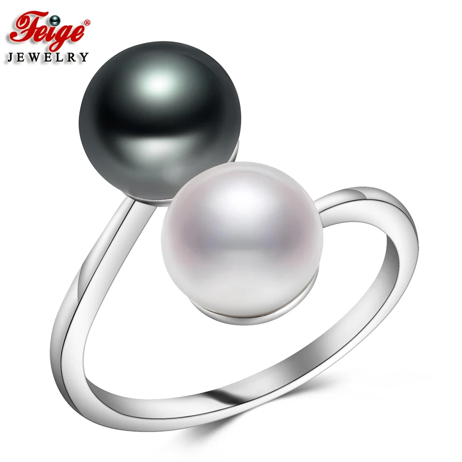 Модные стильные серебряные кольца из натурального жемчуга 925 пробы для женщин, Изящные Ювелирные изделия, подарки 8-9 мм, пресноводное культивированное жемчужное кольцо, Прямая поставка FEIGE