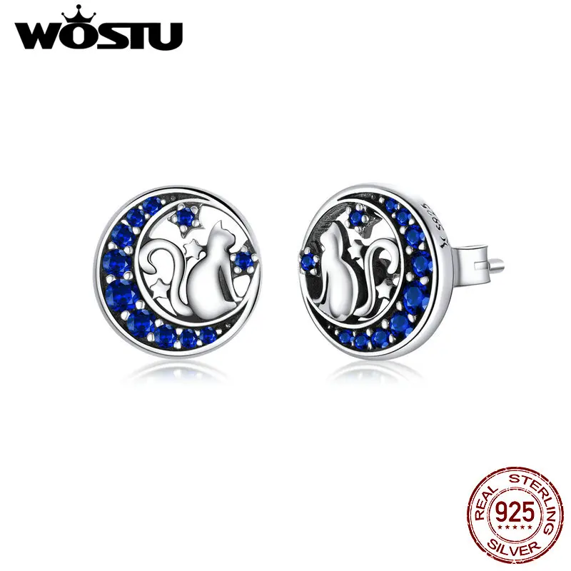 Женские сережки-пусеты WOSTU, сережки-пусеты с синим цирконием и луной, 925 пробы, CQE880