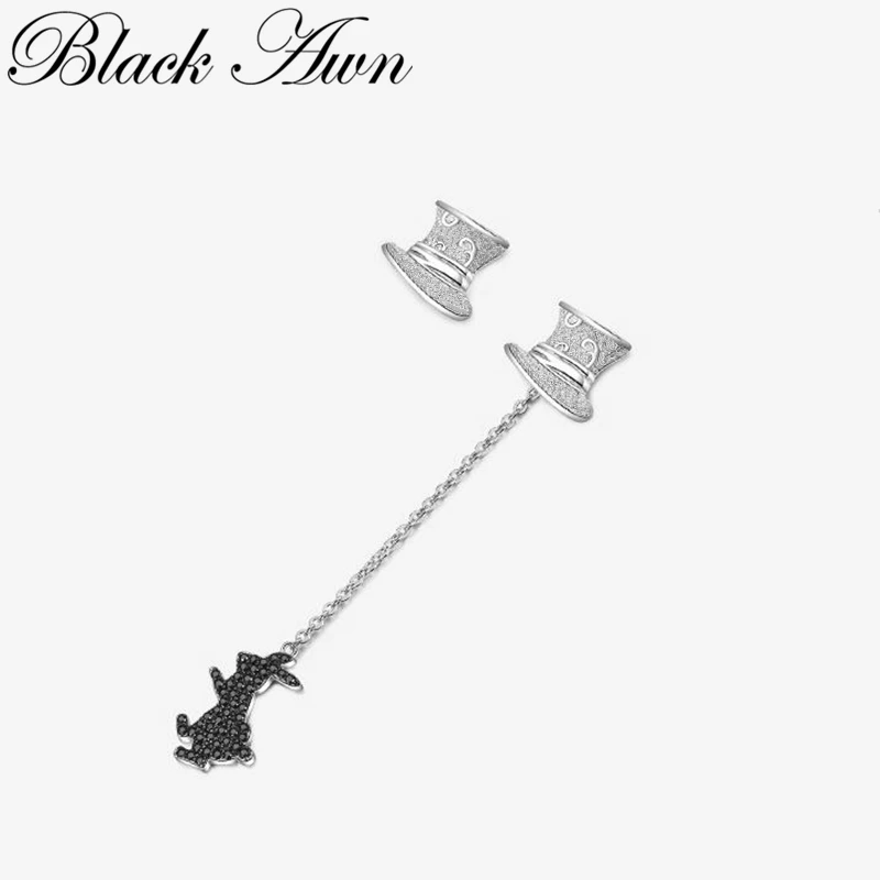Черные AWN из натуральной 925 пробы с серебряным Кроликом, ювелирные украшения, винтажные свадебные серьги-гвоздики для женщин I298