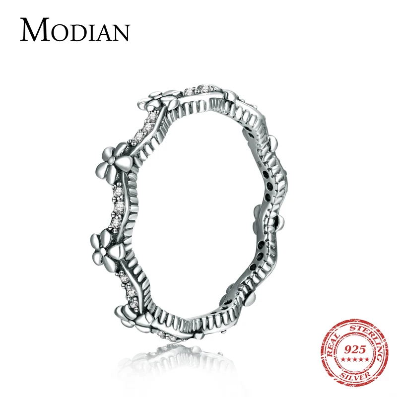 Modian отпечаток кольца Мода 3 цвета цветок стерлингового серебра 925 Stackable очаровательное кольцо для Женские аксессуары, бижутерия подарок
