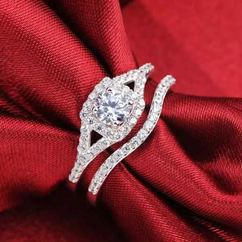 Твердые 925 стерлингового серебра 3 шт в 1 Подушка Циркон Обручальное кольцо Набор для невесты женщин палец подарок Африка мода ювелирные изделия R4842